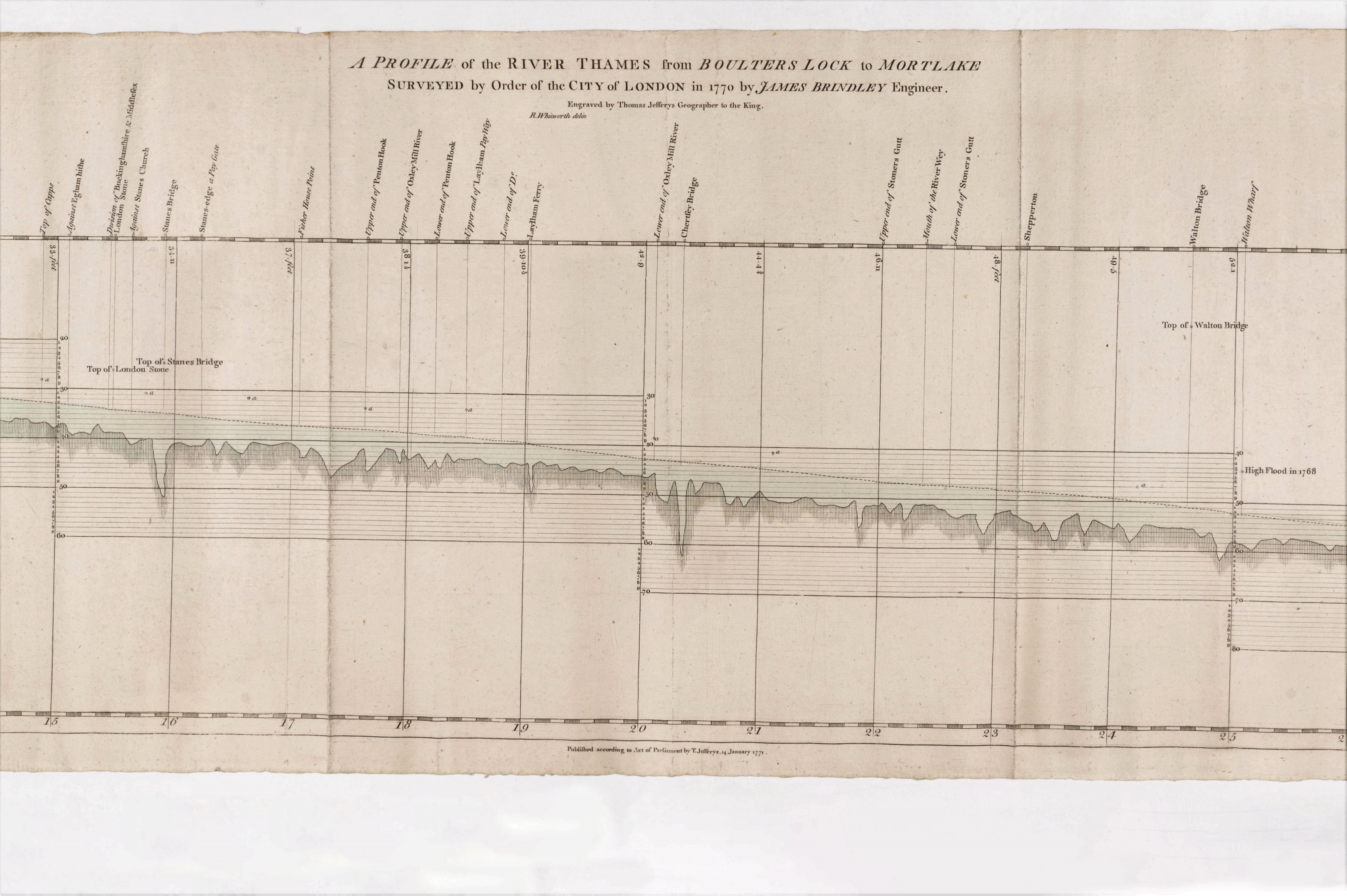 The earliest well-documented extreme flood along the upper river was in 1774. On 12 March, Oxford was cut off, the bridge at Henley washed away, Kingston town hall was inundated and the waters in Teddington church ‘rose to a considerable height’. There are many high water marks along the river that record the event. A further flood in 1809, probably caused by snow-melt and high rainfall, damaged or destroyed bridges at Wallingford, Bisham, Eton and Windsor– allegedly preventing King George III from leaving the Castle.