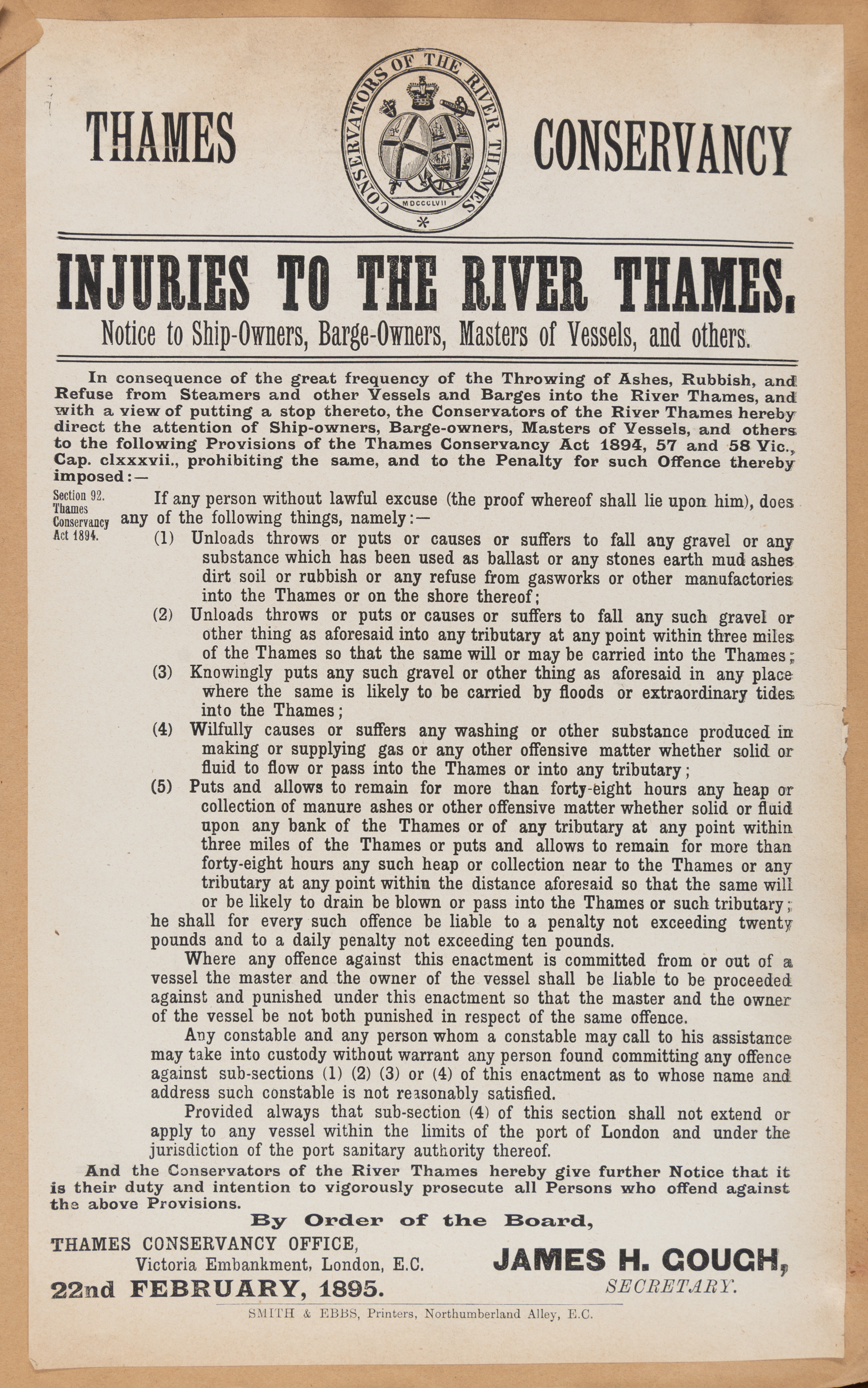 The solution was to dredge the river. Both the Commission and the Conservancy used dredgers to lift material from the river channel, creating greater depth of water and allowing for drainage. Barge owners were also fined for dumping stones or gravel into the Thames.